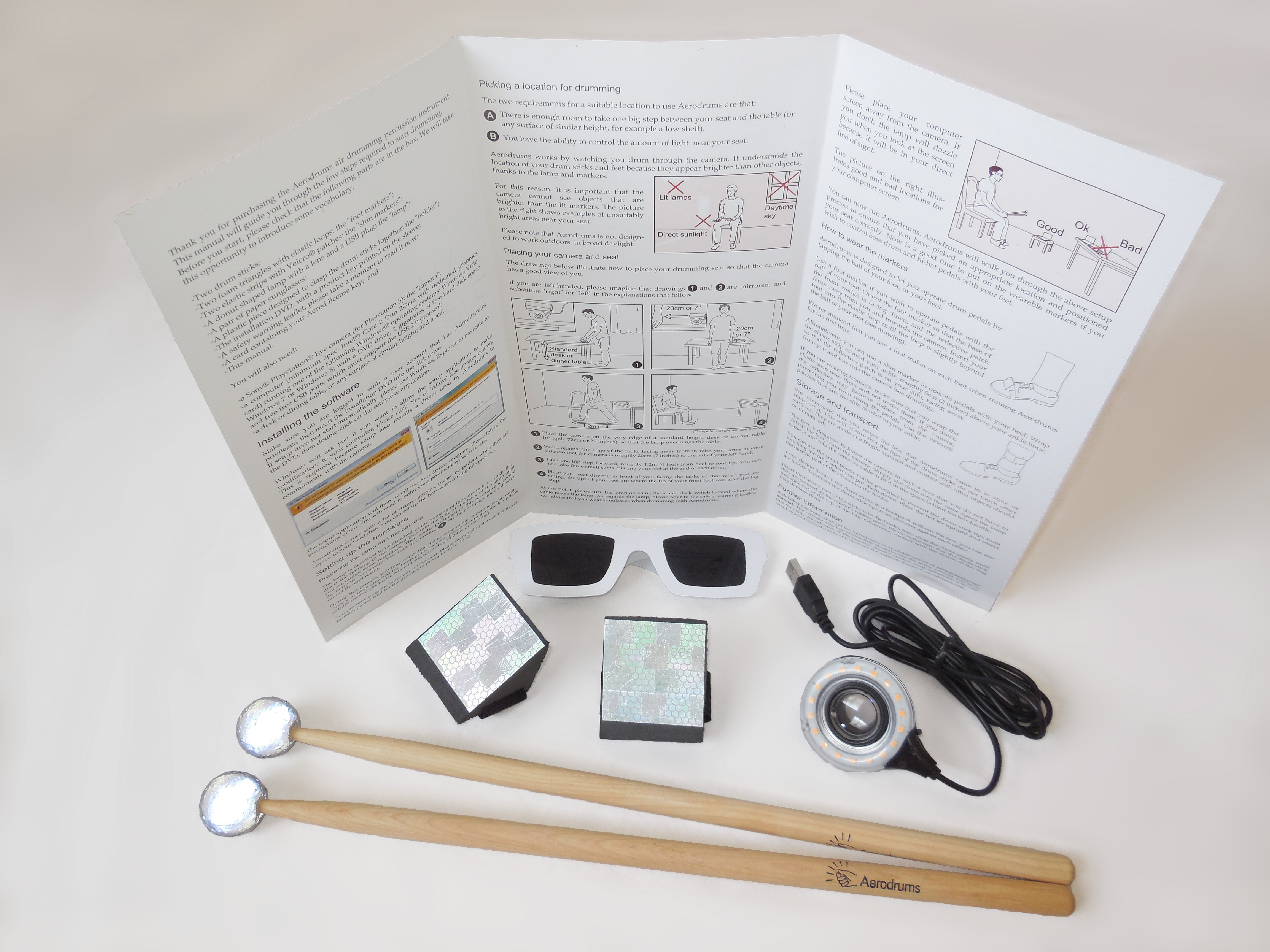 Aerodrums is an air-drumming instrument that allows drumming without a drum kit. It is very portable and is virtually silent when used with headphones. Aerodrums is a proper musical instrument capable of outputting MIDI. It is as expressive as a real drum kit. Aerodrums launched in 2014 and uses cutting edge optical motion capture technology. Before that, air-drumming was not a viable option for musicians. The invention has been covered on national TV in the USA, UK, Japan, France and more. At $199 / £129 / €175, Aerodrums makes a perfect accessory or gift for a drummer, or for someone who is learning the drums.